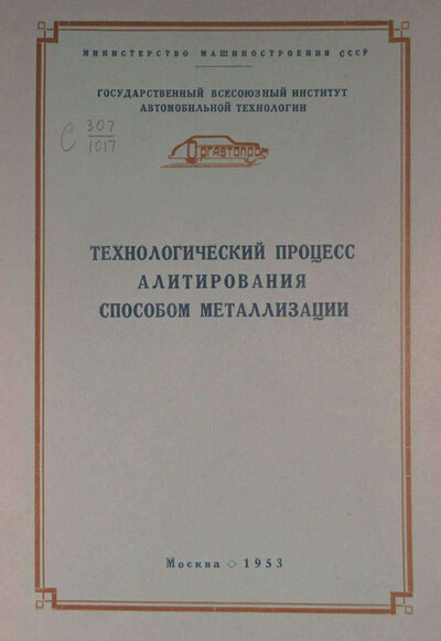 Городнов П.Т. (1953) Технологический процесс алитирования способом металлизации
